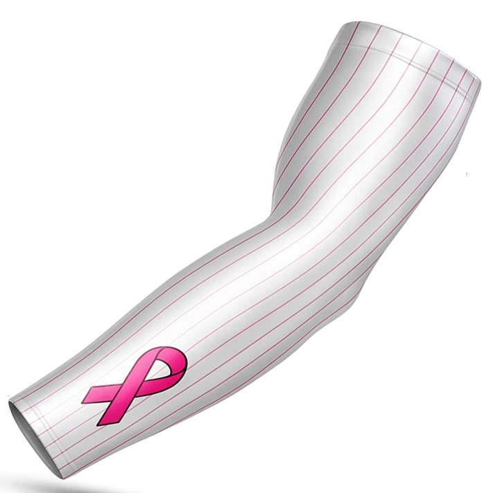 Baseball Sports Compression Arm Sleeve Pink Ribbon Cancer Awareness White Pinstripes