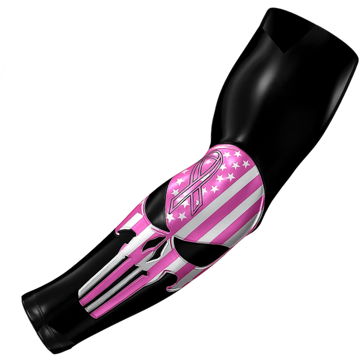 Baseball Sports Compression Arm Sleeve Pink Ribbon Cancer Awareness Punisher Skull