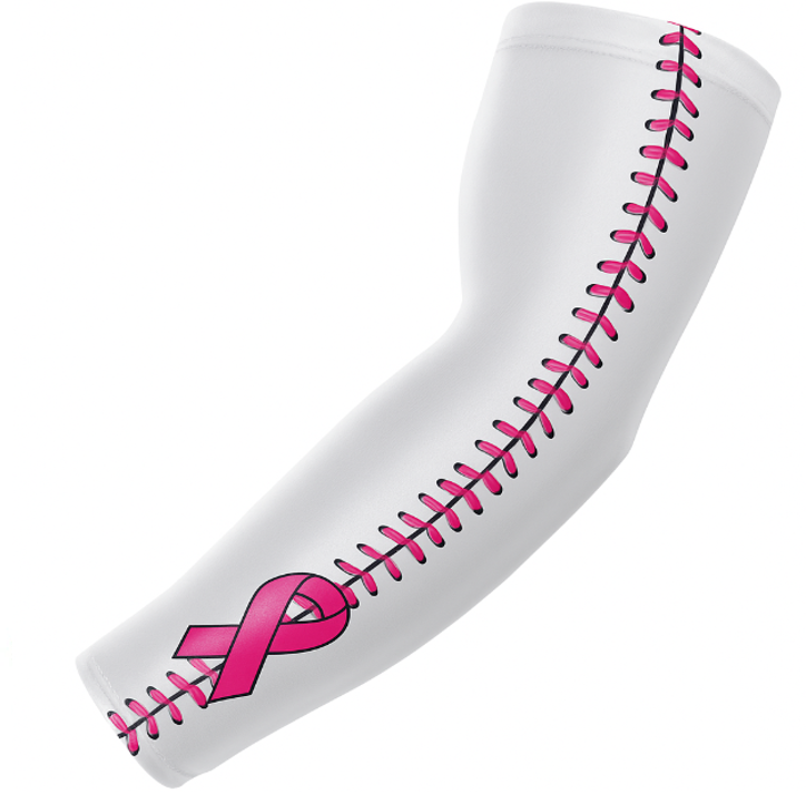 Sports Compression Arm Sleeve Pink Ribbon Cancer Awareness Baseball Stitch
